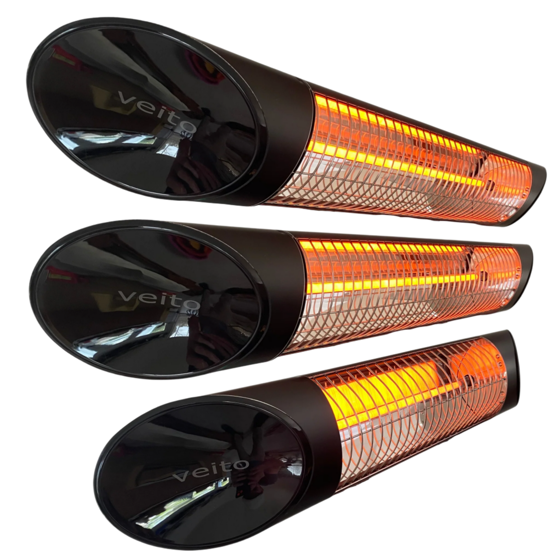 All Veito Blade models deliver immediate and cosy infrared warmth the moment they are turned turned on making them ideal for both indoors or outdoors. Energy is not wasted heating air, infrared heats objects directly for instantaneous warmth and excellent energy efficiency.